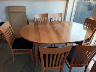 Spisebord med 8 stole og 2 tillægsplader
