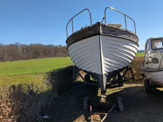 Klinkbygget glasfiberbåd på 17 Fod med styrepult og Teleflex styring gear og gas . Motoren har stået indendørs vinteren over.og skal blot tilsluttes igen. Båden er udstyret med den berømte Suzuki 2 takt motor på 30 Hk som ifølge ejeren kan give båden en fart på 20 knob. Suzukien på 30 Hk er en 2 takt der er meget populær og efterspurgt. Bådvognen der sælges sammen med båden er fabriksfremstillet af rustfrit stål specielt til båden og er virkelig god og robust og kan nok bære en betydelig større og tungere båd. Båd og motor sælges kun samlet, men bådvognen der ikke kan indregistreres kan sælges for sig selv, så sparer du 3000kr. Båden trænger til en grundig rengøring og en maling af overparten til foråret.