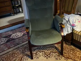 1 stk Farstrup Otiumlænestol med vippefunktion og grøn stof Højde 109 cm Bredde 70 cm Bredde mellem armlæn 53 cm sædehøjde 47 cm