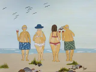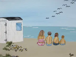str. 40 x 40 cm Motiv: BADEHUSE OG SØMÆRKE Jeg sender gerne ! Excl. fragt kr. 43,00 med GLS Instagram: malerier.iben