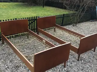 Ældre snedkerfremstillede senge i masivt egetræ