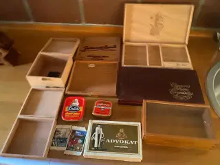 5 + 2 cigartrækasser, 2 metal, 2 spil m.m.kr 225,-