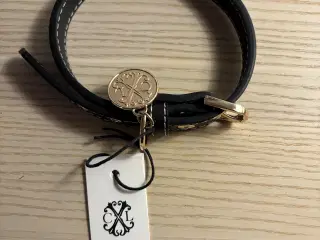 Flot hundehalsbånd i ægte læder med fine detaljer. Måler 30 cm i omkreds. Designet af franske Christian Lacroix. Aldrig brugt.