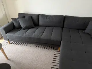 Jeg sælger denne Cleveland sofa med chaiselong venstrevendt. Stof farven er Riviera 51 Antracit, som ikke er aftagelig. Ben er i krom metal. Sofaen har stået i et røgfrit hjem uden kæledyr. Og i super god stand. Målene er: L: 231 cm H: 81 cm B/D: 140 cm