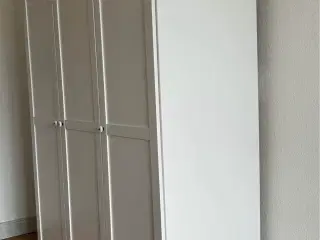 Klædeskab / Tøjskab / Garderobeskab Højde: 201 cm Dybde 58 cm Bredde: 150 cm Udover hylderne i skabet medfølger en skuffe samt 4 trådkurve som passer til højre side af skabet. Skabet er skilt ad og klar til afhentning lige ved døren. Delene er markeret med post its så det er let at samle igen. Fra hjem uden røg og uden dyr. Kan leveres mod merpris.