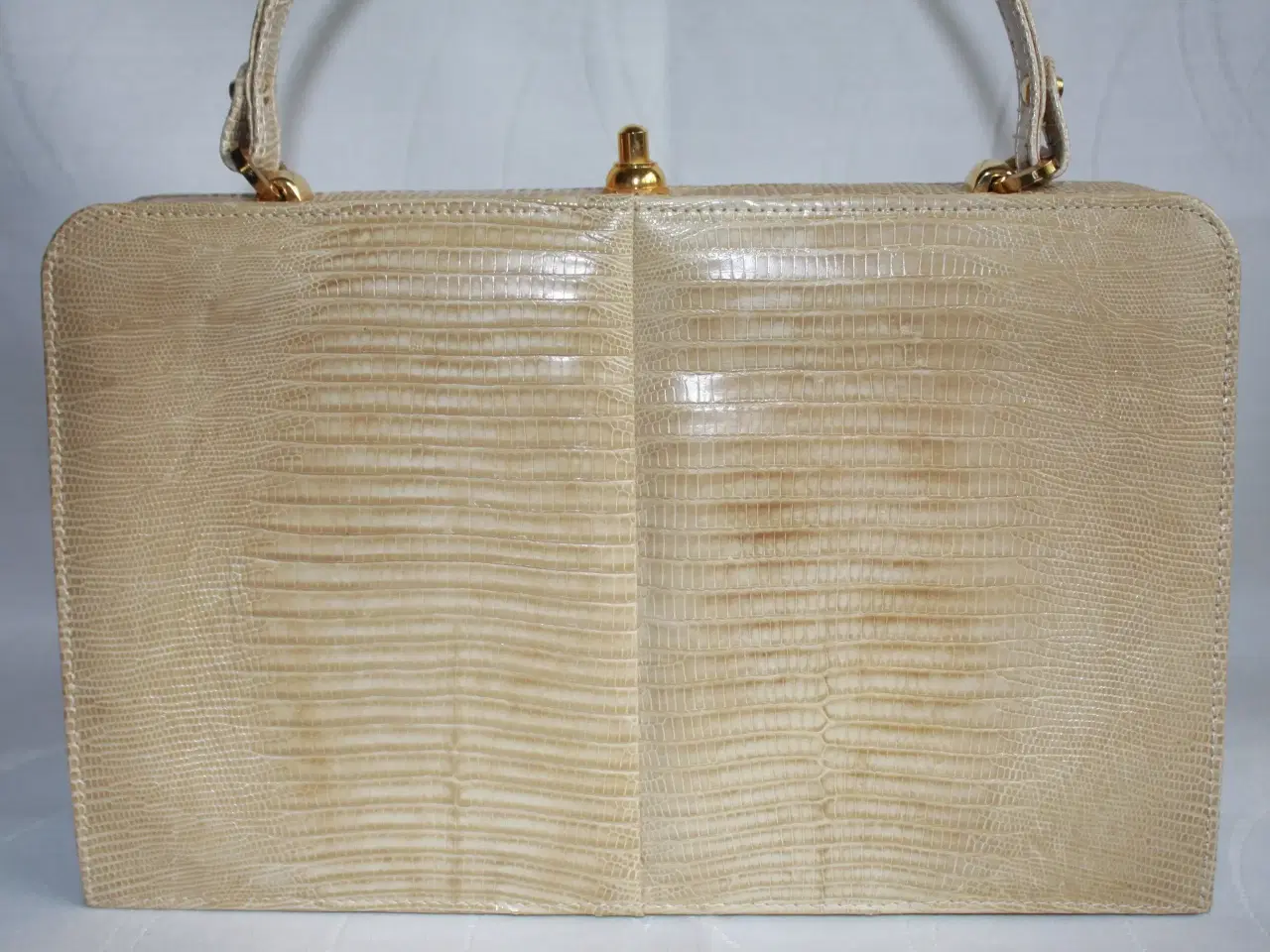 Beige taske fra Bon Goût Højde 16,5 cm Bredde 27 cm Bunden måler 27 x 7,5 cm Et stort rum, og 2 små rum, heraf 1 med lynlås