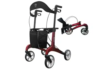 Denne HF 150 er Lindebjergs nyeste foldbare rollatorer. Den er god til både indendørs og udendørs brug og er nem at folde helt sammen, så du kan have den med i bilen.