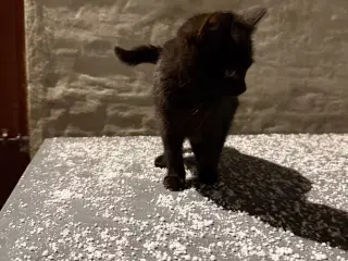 3 sorte med en lille hvid plet foran, en grå med lille hvid plet. Ikke sikker, men er ret sikker på det er 4 hanner. Dygtige til at spise tørkost og bruge katte bagge