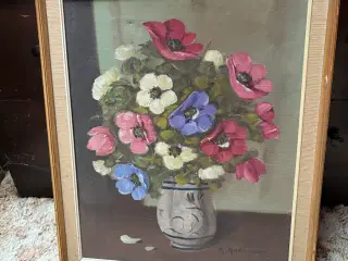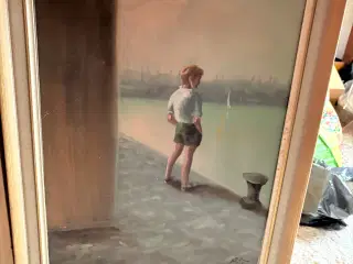 maleriet har en lille rift - se billede nr 3 maleri 90 x 120 cm med ramme 94 x 124 cm