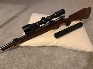 Sauer 90 cal. .308 Win med Zeiss Diavari-Z 3-12x56 T* Klassisk og driftssikker kvalitetsriffel fra Sauer i rigtig flot stand. Riflen fremstår velholdt med flot træskæfte. Monteret med Zeiss Diavari-Z 3-12x56 T* kikkert i original EAW svingmontage, som sikrer præcis gentagelse og fleksibilitet. En stærk allround riffel til både anstand og pürsch med fremragende lysgennemgang. Sælges som komplet sæt. Kun til køber med gyldig tilladelse.