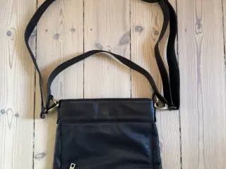 Håndflettet unik taske med justerbar rem. Indvendigt kanvasfor og 6 rum/ lommer. Lynlås til det store rum. Materiale: læder fra ko. Denne i brun/bronze- style Aida. Ingen brugsspor, som ny. Størrelse 32x30 cm. Se eventuelt mere på octupusdenmark.com Kvittering haves ikke mere. Afhentes i Odense C eller sendes mod ekstra betaling indenfor Danmark.