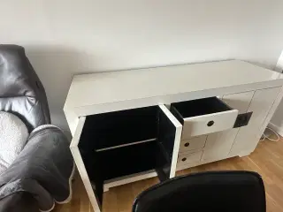 Lille fin skænk med 6 små skuffer. Meget dekorativ. 2 ben skal ha lidt lim. Bredde 89 cm, dybde 38 og højde 79 cm. Skal ned fra 3. Sal, men kan snildt bæres af 2 personer.