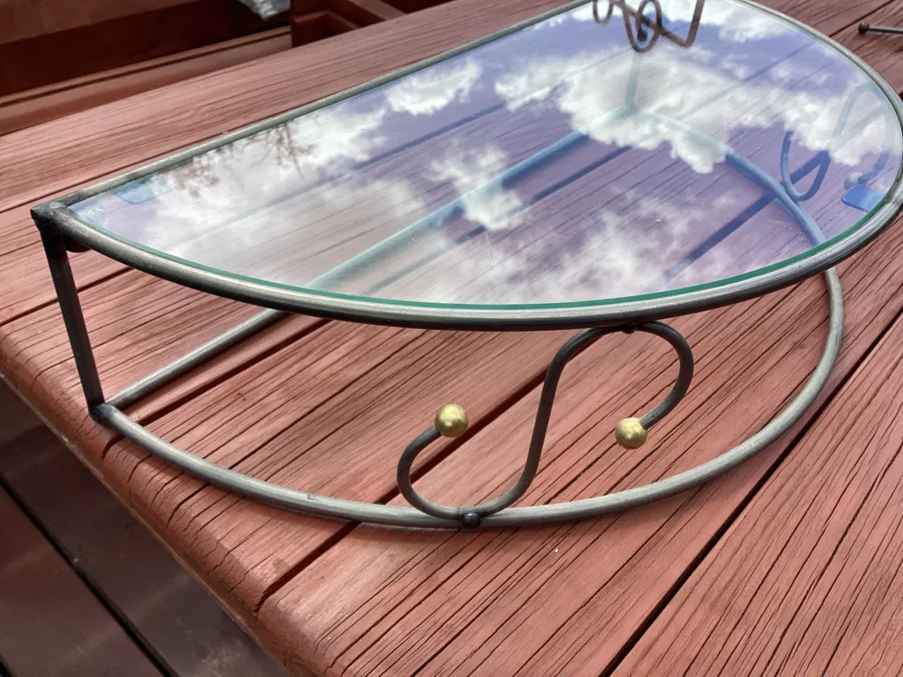 Entre sæt fra Rosendal, antracitgrat rundjern med messing knopper. Aldersrelaterede brugsspor. Består af spejl, lille bord med aftagelig glasplade, 3 knager og en hattehylde/sko stativ. Mål: spejl h ca 93 cm inkl ramme, b ca 44 cm, Bord: l ca 50 cm, b ca 26 cm, h ca 11 cm. Sko stativ/hattehylde: l ca 80:cm, b ca 28 cm, h ca 26 cm- bemærk den en stang er lidt bøjet. Der til 3 knager 1 med1 krog, 1 med 2, og 1 med 3. Sendes ikke. Kun hurtig afhentning. Sælges kun samlet kr 300,- Befinder sig i Karise 4653
