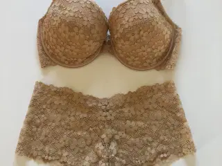 Beige / lysebrunt BH sæt fra Chamade. Bøjle BH med vattering. BH Str. J 70 Trusser / G-Streng - Str. 38 / Medium 65 % Polyamid 35 % Elastan Aldrig brugt. Sælges samlet og prisen er for hele sættet. Mænd med diverse fetisher bedes undlade at kontakte mig. Afhentes i 4100 Ringsted, eller sendes med GLS eller DAO for 50 kr. Se også mine andre annoncer.