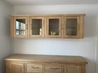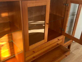 Skænk og overskab med lys i lakeret bøgetræ.