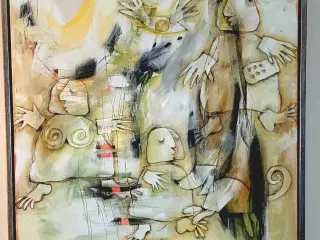 Værk af J.V Martin. Værket er malet i 1980 – er givet som gave til Liz Zwick og Jørgen Nash på Dragabygget i Sverige Værk fra serien ” den gylde flåde ” Var udstillet på ” for fuld udblæsning ” Ny indrammet og opspændt. 121 x 80 cm