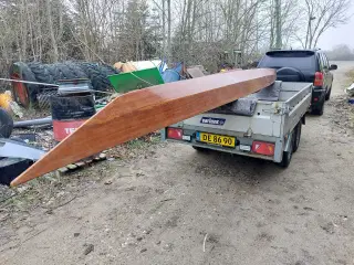 Havkajak, Maghogni Havkajak, Chesapeake 18, b: 61 l: 549, 22 kg, Mahognikajak til en stor roer med høje krav Chesapeake 18. Unik håndbygget kajak i glasfiberforstærket mahognifiner. Det er en kajak for en fysisk stor roer, der ønsker en hurtig og meget sødygtig kajak. Kajakken har et fantastisk glid gennem vandet og er samtidig meget stabil og tryg selv i hård sø. Den lange vandlinje sikrer en god retningsstabilitet og giver mulighed for at holde en høj marchfart. Konstruktionen af mahognifiner forstærket med glasfiner giver en meget stærk og stiv kajak i forhold til vægten. Byggekvaliteten og finish er meget høj. Der er medgået mere end 200 arbejdstimer med bygningen. Længde: 5,49 meter Brede: 61 cm Vægt tom ca.: 22 kg. Vægt komplet med sæde og ror ca. 25 kg Du kan læse om kajakken på nedstående link. https://www.clcboats.com/shop/boats/kayak-kits/touring-kayaks/chesapeake-18-high-volume-sea-kayak-kit.html Sælges til under halvdelen af byggeomkostningen. Der kan følge lamimeret træpagej, kajakvogn, svømmevest og kajakjakke med.
