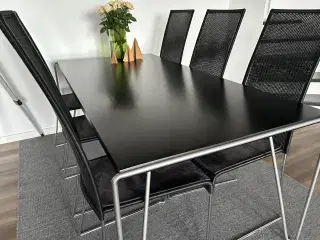Flot sildebens spisebord i lakeret egefiner med sorte ben (Madelina) sælges. Bordet er ca 2 år gammel og kan forlænges/udvides med 2 tillægsplader á hver 45 cm (som kan tilkøbes nye for 989 kr). Bordet m.v har mindre brugsspor. Nypris for bordet er 1.899 kr. Højde 75 cm, bredde 90 cm., længde 150 cm, frihøjde under bord 67 cm og bordtykkelse 3,5 cm, afstand mellem ben 110 cm. Vægt 35 kg.