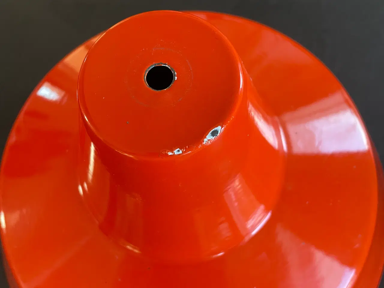 Retro orange værkstedspendel fra Louis Poulsen Flot orange rød emalje Med alm brugsspor Sender gerne