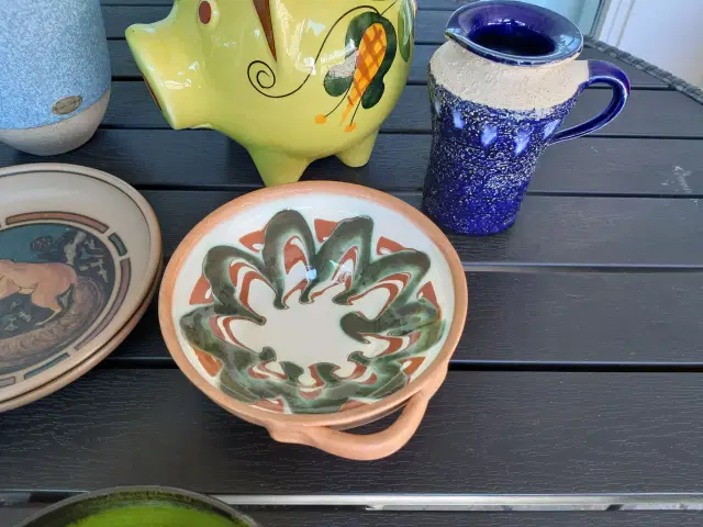 B.Hjort - HM Keramik - Bente Rønne - Germany Skåle - vaser - sparegris - lysestage - kande Alt i fin stand uden skår og ridser.