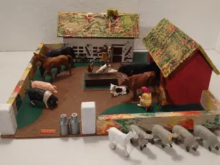 Sjælden gammel Reisler bondegård med 43 dele. 15 dele er fra Reisler. Modellen blev produceret omkring 1960. Pæn stand jvf. fotos. Mål på bundplade: (40 x 29,5)cm Højde ca. 14cm. Sælges KUN samlet.