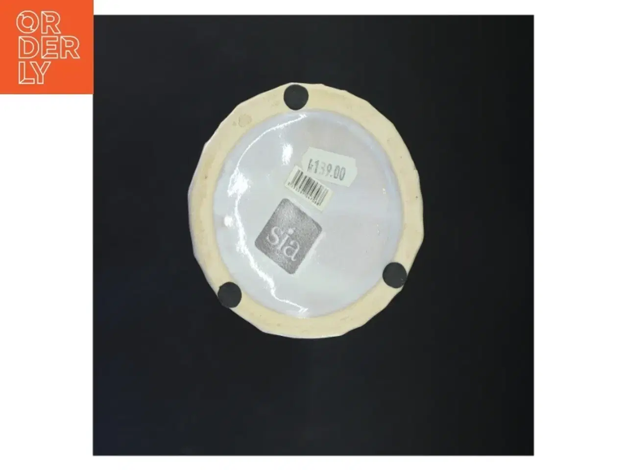 Klik på 'Se annoncen hos forhandleren' for at se varen i vores webshop Denne vase er 45 cm høj og lavet af keramik, dekoreret med små pletter i et elegant mønster. Den har en slank, flaskeformet design med en smal åbning i toppen. Vasen har fire puder på bunden for stabil placering. Mærket 'sia' er synligt på bunden af vasen, sammen med en prislap der indikerer 139.00. Tags: keramik, dekoration, vase Brand: Sia Farve: hvid Stand: 80 - Vi sender til hele landet for 49 kr. Leveringstiden er 1-3 hverdage. Du kan også gratis hente den på vores lager på Industrivej 10 i Slangerup. Er du i tvivl om varen stadig er til salg? Klik på knappen "Se annoncen hos forhandleren" for at se den i vores webshop. Kan du se den der, er den stadig til salg Orderly er en ny måde at købe brugt på. Vi har alle vores sælgeres ting på vores centrale lager. Derfor kan du være helt sikker på at få dine ting - og du kan samle flere ting på tværs af sælgere og kun betale én gang fragt.
