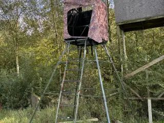 Skydestiger sælges, 2 stk. Træ og en i jern, denne kan dreje 360 grader, og der er sat vindskærm på - Det er nemt at komme til med bil og trailer - yderligere information kontakt undertegnede
