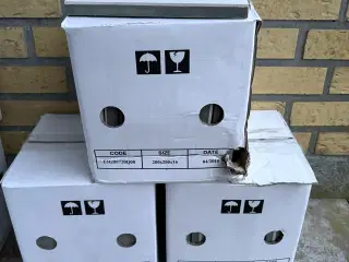 Fliserne er i overskud fra eget badeværelse (se billede) og har aldrig været i brug, blot stået i indpakningen. Der er 3 pakker (af 1,44m2), 4,33m2 i alt.