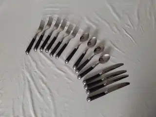 8 dele 2 gafler: Mærke: Bent Brandt 1 ske, Mærke: Kent storkøkken 1 gaffel, 1 knive, og 1 kagegaffel, Mærke: Ukendt 1 teske Og 1 gaffel Dalper Alle i samme design og kvalitet Næsten ny