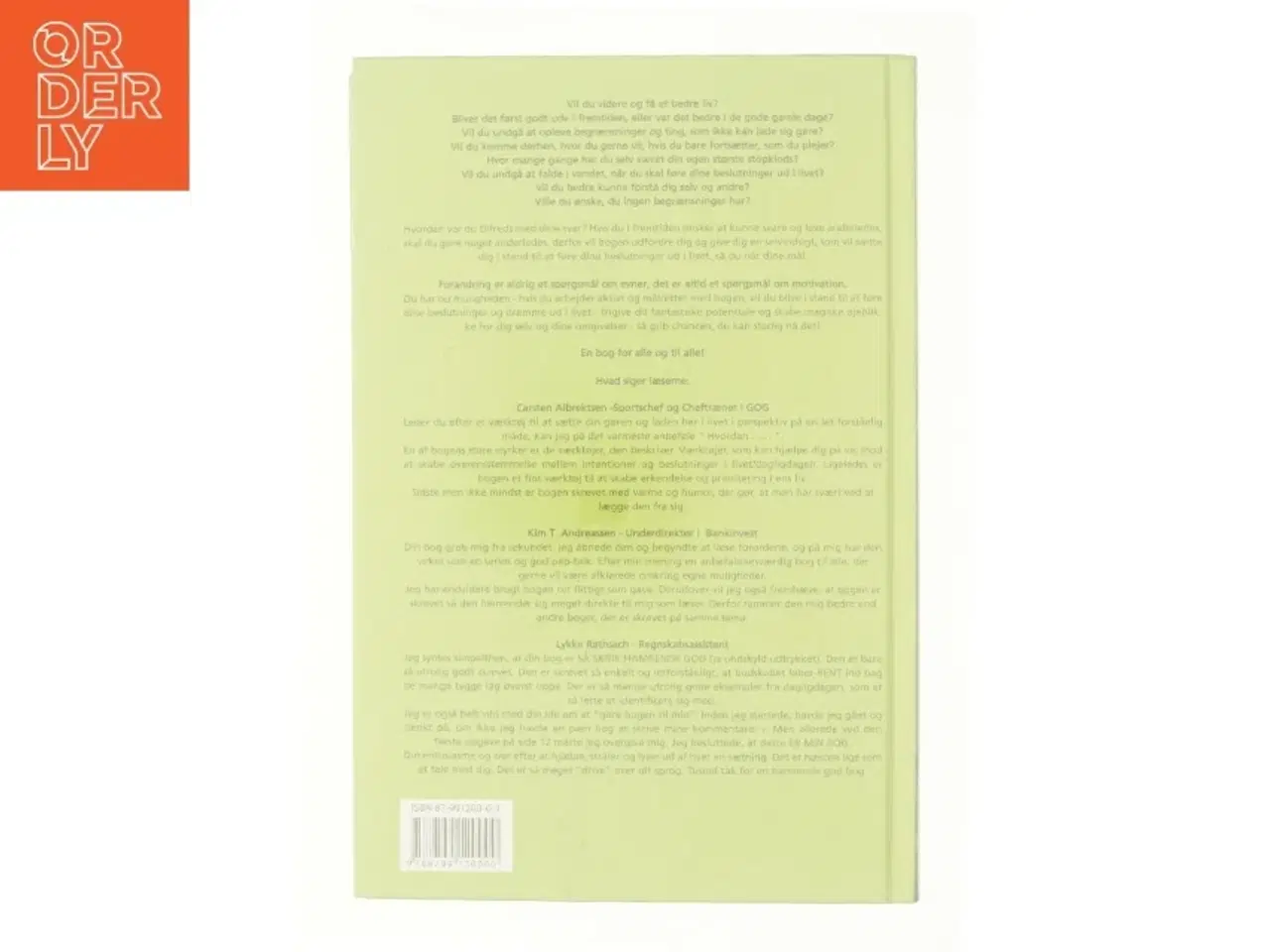 Klik på 'Se annoncen hos forhandleren' for at se varen i vores webshop En udfordring til læseren og en vej til større selvindsigt, som vil sætte en i stand til at føre beslutningerne ud i livet, så de opsatte mål bliver nået Forlag: Ole Bødtcher Udgivelsesår: 2011 Sider: 260 Sprog: Dansk Brand: Ukendt Farve: Ukendt Stand: 60 - Vi sender til hele landet for 49 kr. Leveringstiden er 1-3 hverdage. Du kan også gratis hente den på vores lager på Industrivej 10 i Slangerup. Er du i tvivl om varen stadig er til salg? Klik på knappen "Se annoncen hos forhandleren" for at se den i vores webshop. Kan du se den der, er den stadig til salg Orderly er en ny måde at købe brugt på. Vi har alle vores sælgeres ting på vores centrale lager. Derfor kan du være helt sikker på at få dine ting - og du kan samle flere ting på tværs af sælgere og kun betale én gang fragt.