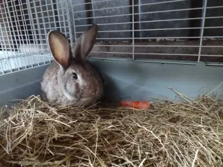 New Zealand Red X Tysk kæmpeschecke unger som er født 17 oktober 2025. Meget stille og rolige som er velegnet som kælekaniner. Kan evt også bruges som slagte kaniner. Krydsnings kombinationen gør at de bliver store og meget kødfulde. Hunner 175 kr. UDSOLGT Hanner 125 kr.