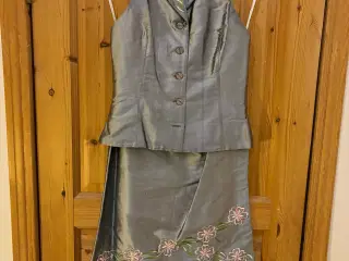 Smuk med iøjnefaldende motiv. Sort grundfarve med hvide og røde farver- super smart til et par leggings og lange sorte støvler eller til nylonstrømper og en festsko