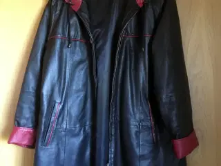 Rigtig pæn frakke med bindebælte. Har 2 store lommer forpå og slids bag på frakken. Gennemforet med sort stof. Bomuld og Polyamid, foer polyester Kun brugt 1 gang