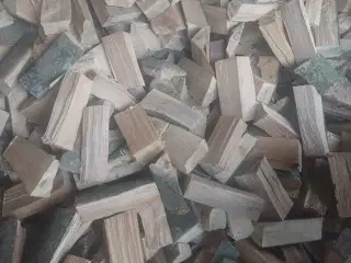 Kløvet tørt brænde ask/eg/birk skåret i ca. 50 cm stykker. Minimum salg 2 kasserummeter