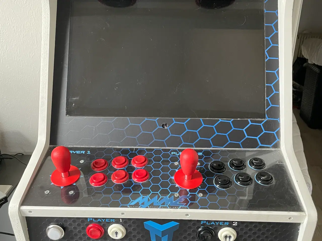 Flot Arcademaskine med mange spil sælges maskinen har 2 spiller funktion i front og 2 mere på siderne