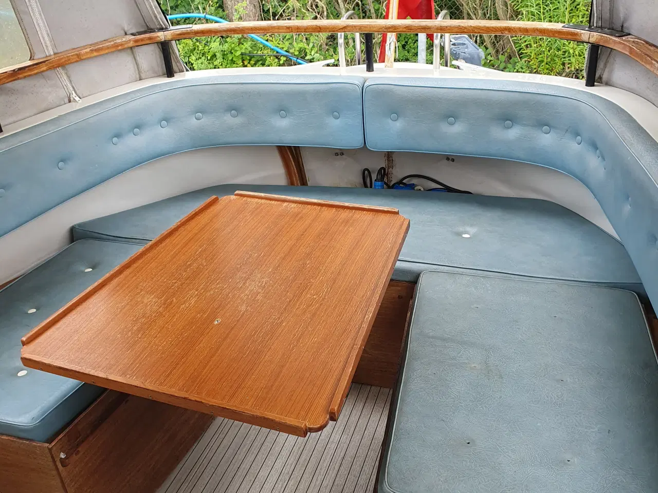 Velholdt årgangen taget i betragtning, passet med bundmaling. Passet med olieskift, filterskift og klargøring hvert år. Motoren starter hver gang og kører godt. Båden er bleven taget op af vandet hver efterår, og sat i vandet om foråret. 4-5 sovepladser. Køleskab og toilet med toilet tank. Redningsveste, fender, anker, tovværk medfølger. Købt i år 2000, har tidligere sejlet i Silkeborg søerne, men har nu fast plads på Fredericia havn. Nuværende ejer er 2 ejer på båden. De to sidste billeder, viser det arbejde der mangler på den, deraf prisen. Skarp pris 68.000 kr Bådstativ kan købes med, hvis det ønskes.