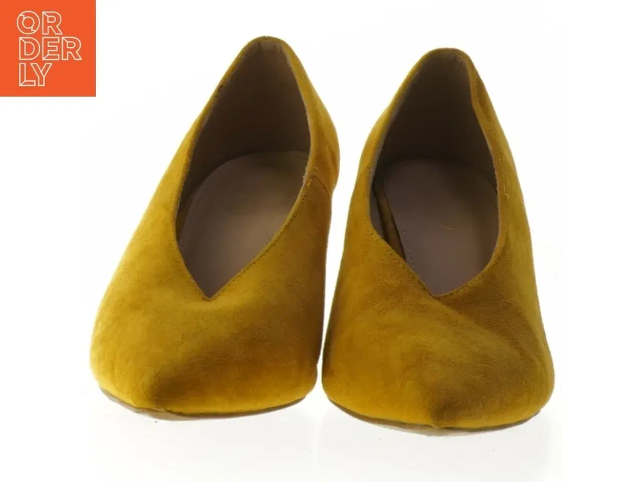 Klik på 'Se annoncen hos forhandleren' for at se varen i vores webshop Disse gule stiletter er lavet af ruskind og har en klassisk spids tå. De har en lav hæl, der giver et elegant look. Skoene er i størrelse 40 og ser ud til at være brugt, som det kan ses på sålen. Brand: Ukendt Farve: gul Stand: 60 - Varen har mindre spor fra almindelig brug (Se billeder) Vi sender til hele landet for 49 kr. Leveringstiden er 1-3 hverdage. Du kan også gratis hente den på vores lager på Industrivej 10 i Slangerup. Er du i tvivl om varen stadig er til salg? Klik på knappen "Se annoncen hos forhandleren" for at se den i vores webshop. Kan du se den der, er den stadig til salg Orderly er en ny måde at købe brugt på. Vi har alle vores sælgeres ting på vores centrale lager. Derfor kan du være helt sikker på at få dine ting - og du kan samle flere ting på tværs af sælgere og kun betale én gang fragt.