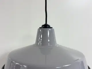 Vitrika nr. 23418: Har denne rigtig fine gamle loftlampe til salg - BYD ... Vitrika nr. 23418 som er fremstillet i messing og brun på yderside med hvid inderside. Diameter på ca. 37 cm og ca. 22 cm høj Patina pletter på messinggrebet / bøjlen men eller i fin stand. Original ledning med hæve / sænke (oprul)