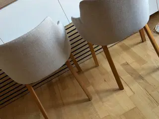 4 hvide Myrestole sælges pga flytning. Stolene har en del år på bagen, og bærer selvfølgelig præg af at være brugt i dagligdagen. De fremstår som brugte men velholdte..