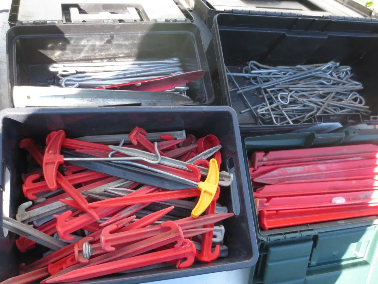 Skovle til stranden 50kr pr.stk,Teltpløkker 200 kr.