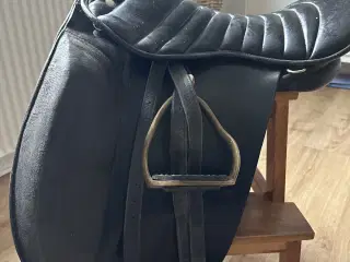 Sadel med latex udstopning Udskifteligt kopfjern Velholdt og rigtig god stand Brugt til forholdsvis kortrygget islænder Altid opbevaret tørt og lunt Karslund stige bøjler og gelunderlag 17” kan medfølge
