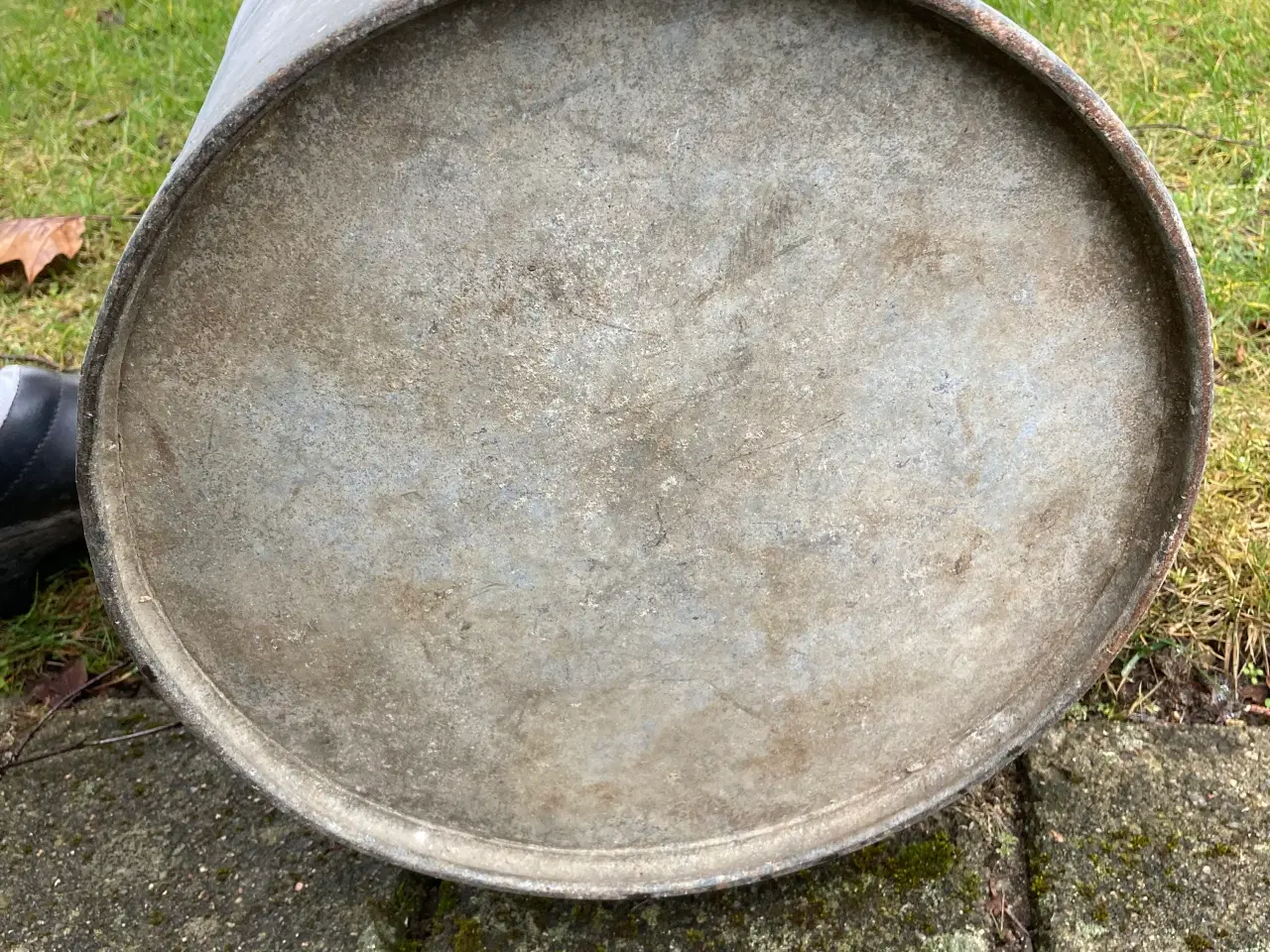 Gammel beholder til petroleum, tæt og med fint messinggevind i prop. Højde 64 cm., mærket BP 856.