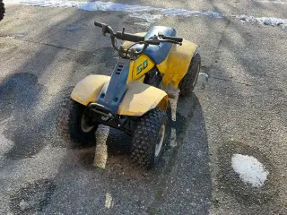 Starter og køre fint, der er nyt cylinder kit på ikke en ny maskine men en stabil atv. Der er monteret en fin alu dørk kasse bag på til opbevaring skjolde har fået lidt knubs med tiden