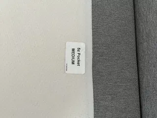 Blød til mellem boxmadras. Den er i hvert fald ikke hård. Pæn og ingen skjolder. Den er lidt mørk i hjørnet. Vi kan ikke finde benene, så umiddelbart er der ikke ben med. Men vi kigger efter dem.