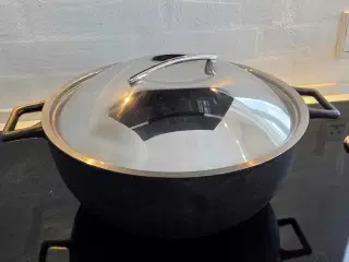 Stort glas grydelåg, Ø 31 cm, med damphuller for at regulere trykket inde i gryden – næsten som ny. Betaling kun kontanter eller bankoverførsel – nærmere detaljer fås ved henvendelse. Varen skal afhentes af køberen.
