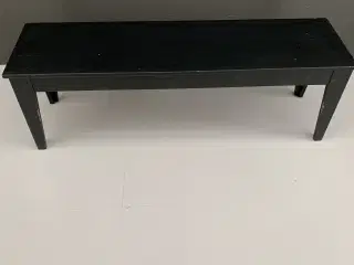 Bord fra VIA Copenhagen, smoked oak med hvid bordplade. Ø=68cm Bænk i afrikansk mahogni stykker. L= 125 cm B= 24 cm H= 48 cm Sælges evt hver for sig. Bord 1.000 kr, Bænk 500 kr.