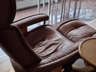 Siesta lænestol høj model i brunt læder velholdt men kan godt bruge lidt læderolie.