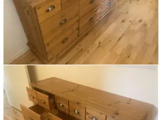 Skovby skænk i Mahogni Fin skænk uden ridser eller slag, top pladen har patina, er falmet i venstre side, som ses på foto. Den kunne måske også males i hvid eller anden farve. Toppladen er 200 cm lang, på midten 49 cm, det smalle i enderne 39 cm. Selve skænken 160 cm lang og 41 cm dyb, højde 82 cm. Gratis levering, maks. 40 km.