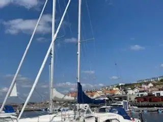 Båden er taget på land for vinteren og står i overdækket telt. Båden er i meget fin stand. Den er søsat første gang i 1989. Vi har sejlet i den siden 1996 og haft en utrolig glæde af den hver eneste sommer. Men tiden er kommet hvor vi ligesom ikke længere kan holde til det. Det er årsagen til salget.Det er en meget søstærk og velsejlende båd, Båden er udstyret som følger: Lod Log Vindmåler GPS VHF Gode sejl (ikke nye) Rullerorstag Sprayhood + en extra Cockpittelt batterier 3 stk Ratstyring Brændstoftank 25 l ( svarer til ca 25 timers sejlads på motor) vandtank 50l 2 ankre 1 for og 1 agter fendre Fortøjninger Gasapparat 2 blus toilet og håndvask Giv et bud Yderligere information kan fås tlf 61282203 Kun seriøse henvendelser