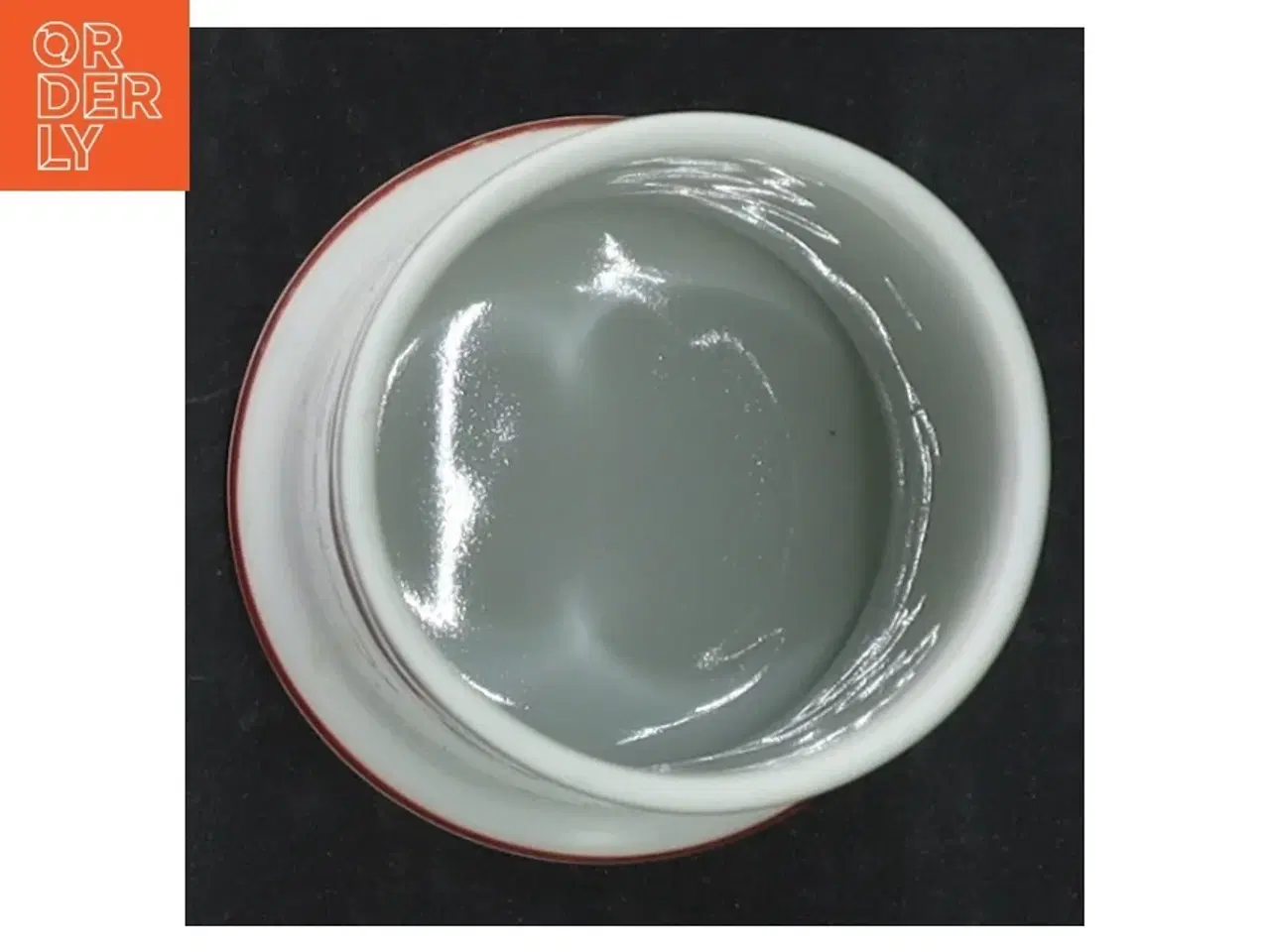 Klik på 'Se annoncen hos forhandleren' for at se varen i vores webshop En cylindrisk dåse af porcelæn i hvidt med et matchende låg. Dåsen er dekoreret med en enkel rød linje langs kanterne og har ordet 'Carry' trykt i sort skrift på fronten. Låget har et tilsvarende rødt design. Bunden af dåsen har en stempling med oplysninger om producent og oprindelse. Brand: B&G Farve: Hvid Stand: 60 - Varen har mindre spor fra almindelig brug (Se billeder) Vi sender til hele landet for 49 kr. Leveringstiden er 1-3 hverdage. Du kan også gratis hente den på vores lager på Industrivej 10 i Slangerup. Er du i tvivl om varen stadig er til salg? Klik på knappen "Se annoncen hos forhandleren" for at se den i vores webshop. Kan du se den der, er den stadig til salg Orderly er en ny måde at købe brugt på. Vi har alle vores sælgeres ting på vores centrale lager. Derfor kan du være helt sikker på at få dine ting - og du kan samle flere ting på tværs af sælgere og kun betale én gang fragt.